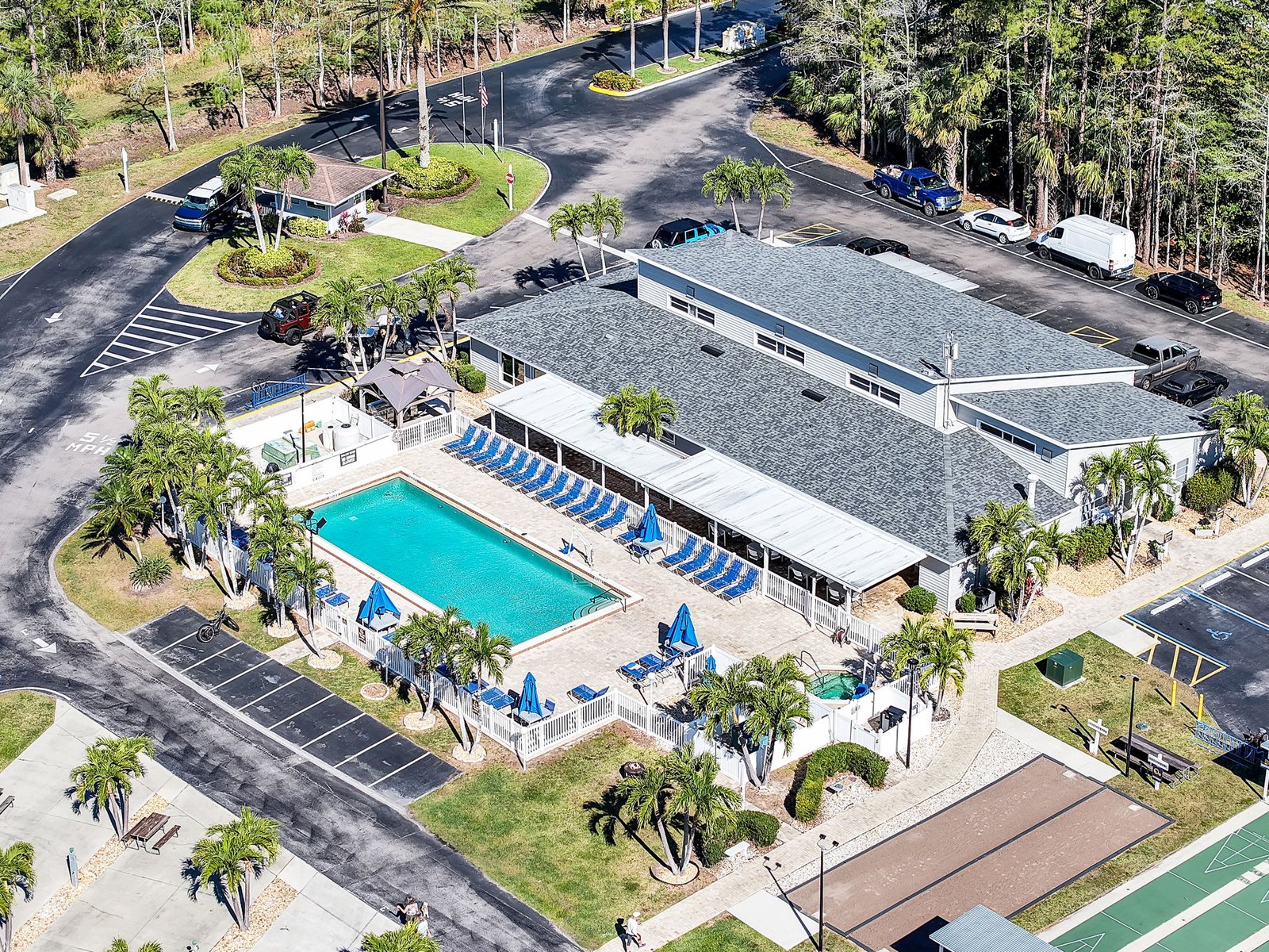 On the court, you can play Pickleball, Bocco Ball, Pentanque and Shuffleboard. Additionally enjoy fun at the